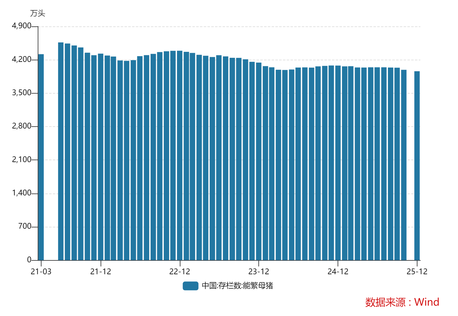 截至2025年12月,我国能繁母猪存栏量3961万头,还是高于3900万头的正常保有量。更值得警惕的是,产能出现边际回升迹象。Mysteel数据显示,2026年1月份重点样本企业综合能繁母猪环比增长0.01%,其中规模场环比增长0.02%,中小散环比下降0.36%。