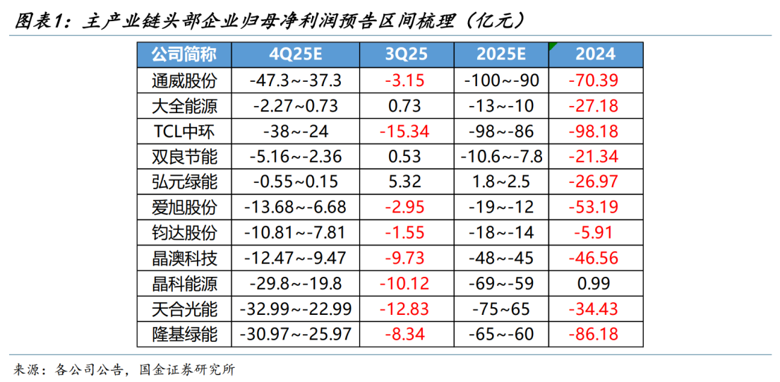 分季度来看,2025年Q4一些光伏企业亏损进一步扩大。