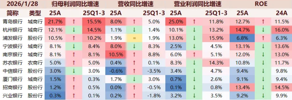 经济发达地区的城农商行依然业绩增长靠前,青岛银行、南京银行、宁波银行等增长非常明显。营收与净利润已经连续两年下滑的招行,在2025年实现了营收持平,利润增长。