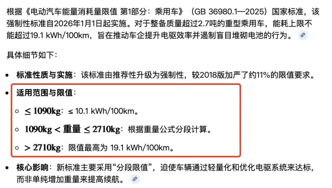 今年1月1日,《电动汽车能量消耗量限值》新国标正式颁布,引入了一套与重量高度相关的能耗限值计算公式,并将电动乘用车的百公里电耗上限严控至19.1kWh,迫使车企更严肃地对待电动汽车轻量化的课题。