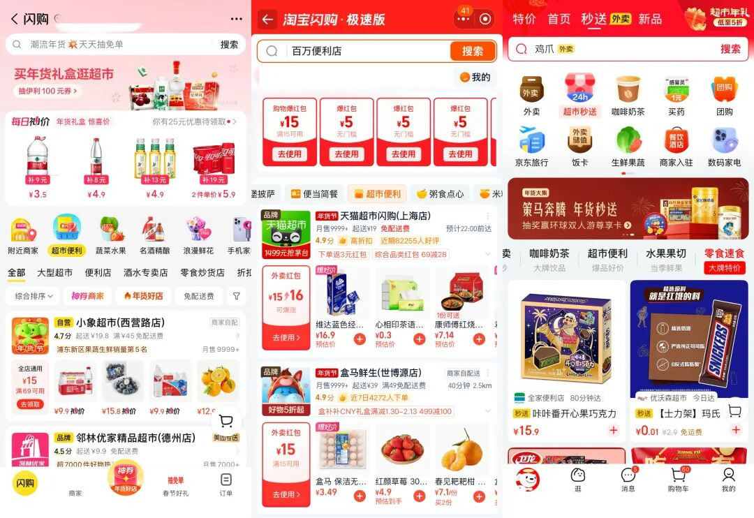 各平台的即时零售服务