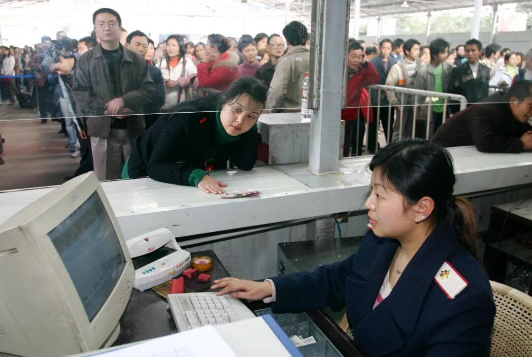 那些年,铁路客运的能力仿佛怎么都赶不上逐年增长的回家渴望。春运期间,火车票尤为紧俏。曾任北京火车站工会主席的谢景屹回忆,春运时“全员上岗,通宵卖票,盒饭直接送到售票员身边,边工作边吃饭”。即便如此,北京火车站售票窗口前还是排起了长龙,“弯弯绕绕能有200多米,密密麻麻的排队者把广场占得满满的”。直到21世纪初,这样的场景仍在各大火车站反复上演。