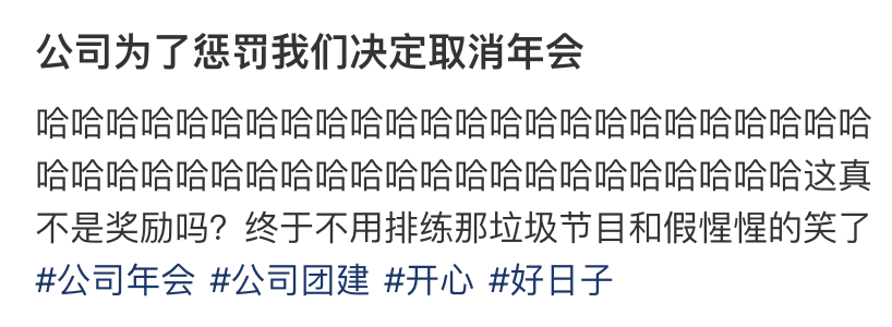 对员工来说,只要不取消奖金,取消年会无关痛痒、甚至值得庆贺。