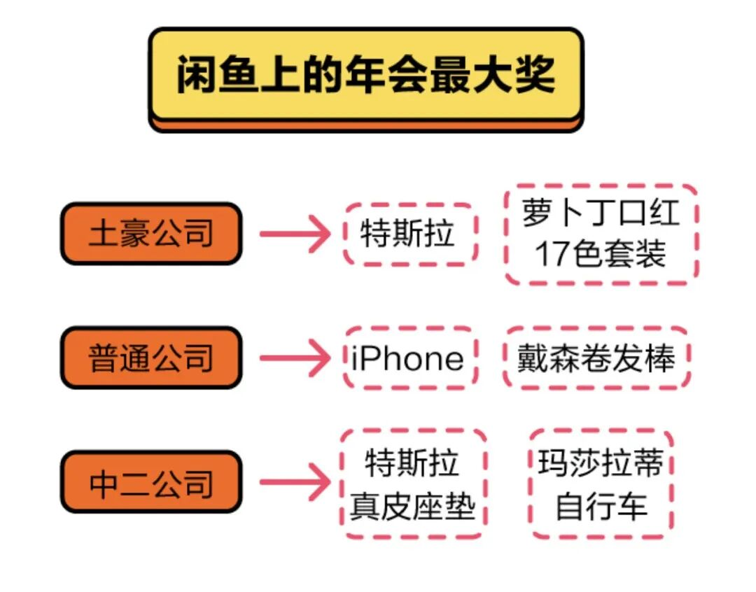 二手平台汇总了2019年被挂上闲置网站的年会奖品信息,并绘制了年会奖品鄙视链: