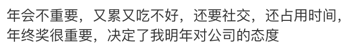 如果说往年的年会是大型凡尔赛社交,充满了炫耀和竞争,那今年的年会关键词只有一个: