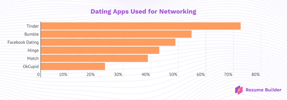 ResumeBuilder对2225名交友软件用户进行的一项最新调查发现,至少有34%的用户会利用这些应用寻找新的工作机会。