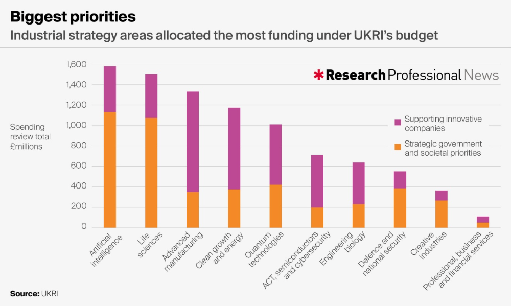 按领域划分的英国国家科研与创新署(UKRI)拨款数额|图源:UKRI