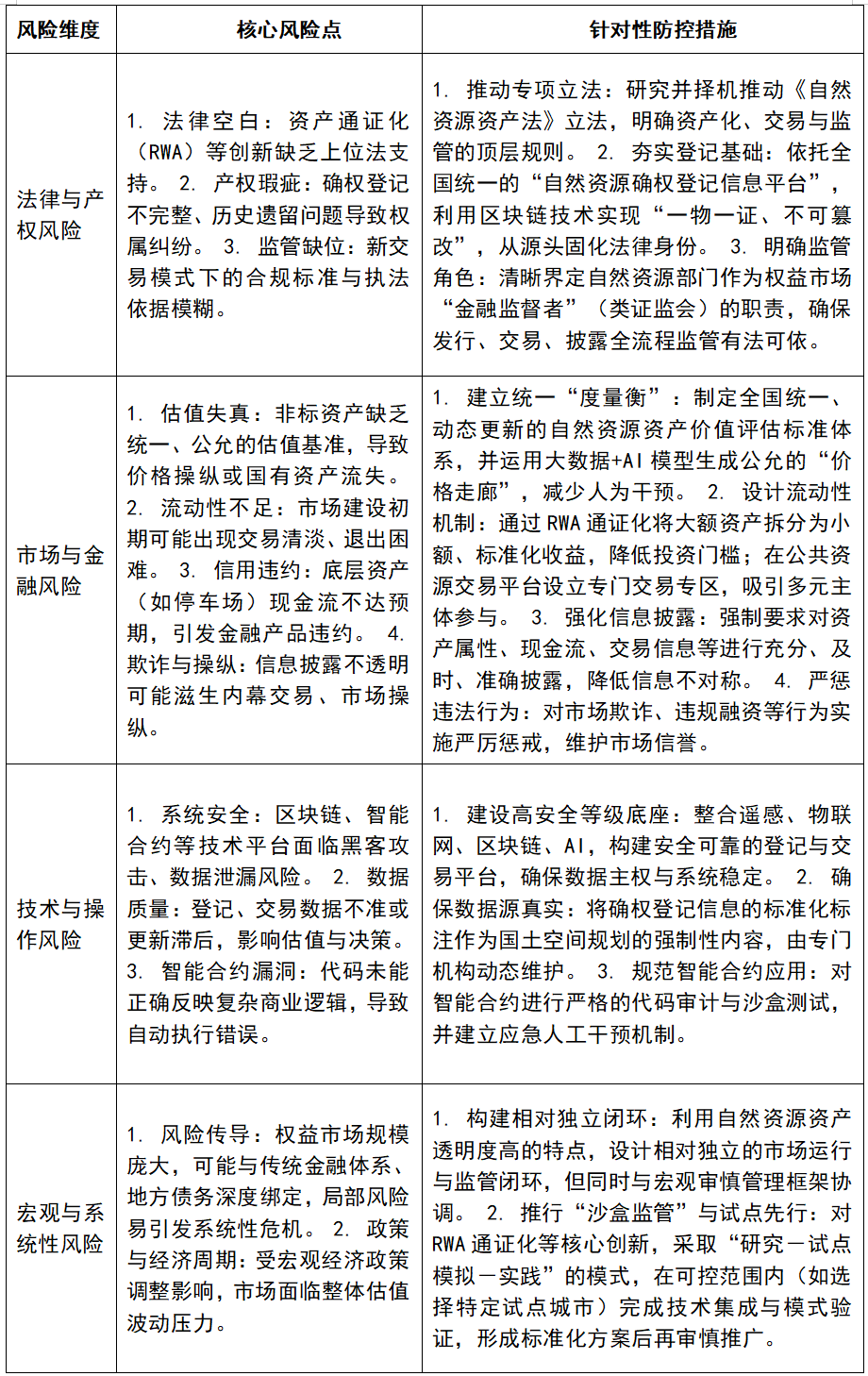 随着自然资源权益市场改革进入建设与推广的深水区,必须同步构建与之匹配的、严谨科学的风险防控与效益评估体系。这不仅是为了“守住不发生系统性风险的底线”,更是为了精准度量改革红利,确保百万亿级资产盘活过程行稳致远,并为其持续优化提供决策依据。