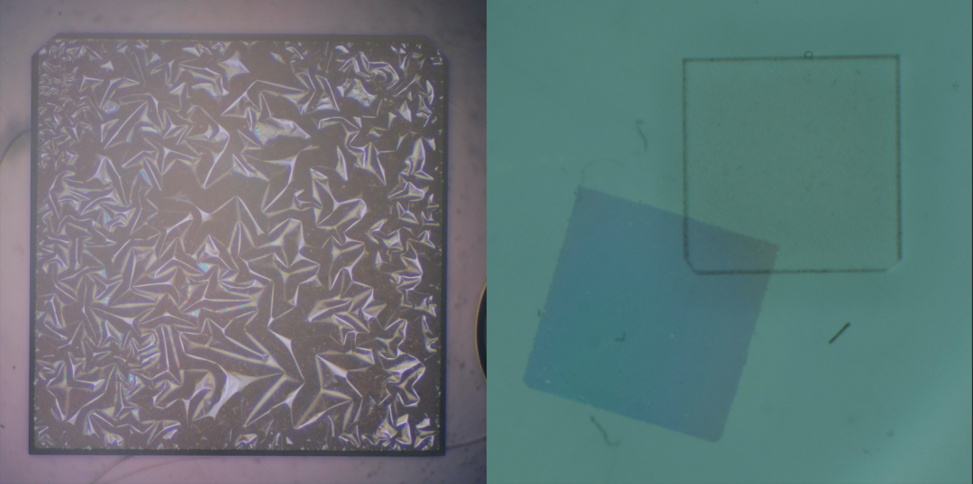 功能层剥离过程(左),功能层完全自由剥离后(右)