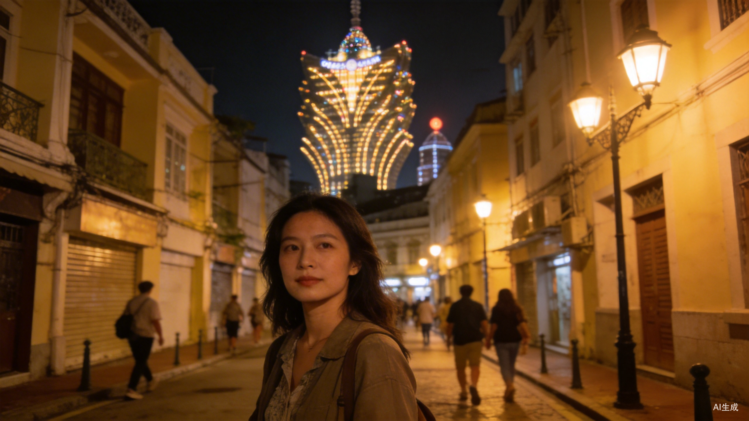 在老城区狭窄的路口,能远远看见耸立在远方的新葡京。