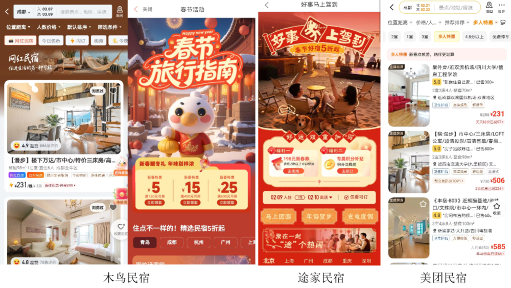 在这种趋势考量下,2026春节档三大民宿预订平台也走出了截然不同的竞争路径,呈现出鲜明的“多元”特征。