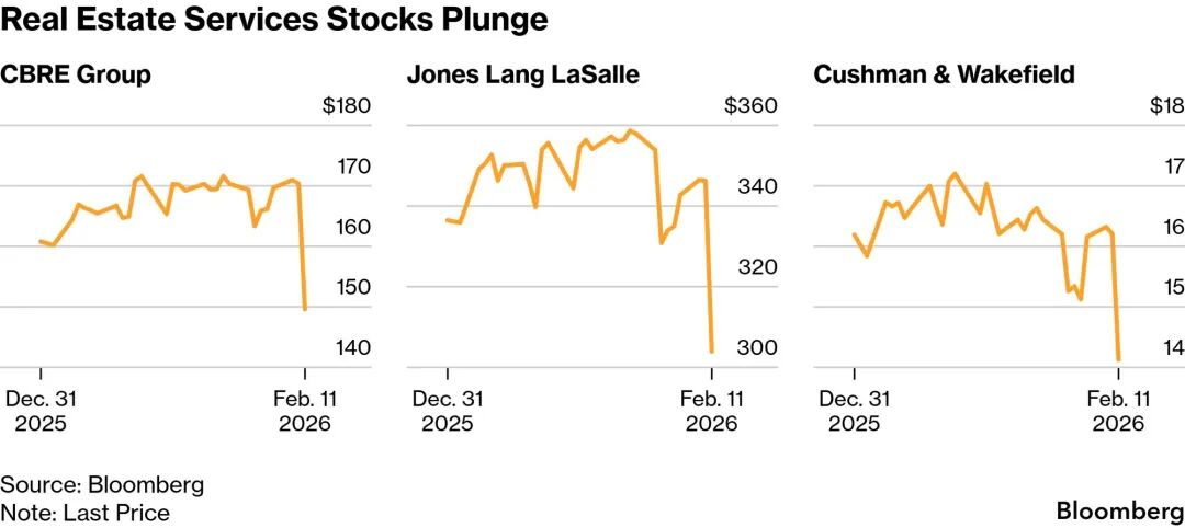 现在,只要是高收费、劳动密集型、可能受AI颠覆的商业模式都会被扫射——这种“扫射型交易”或“风暴眼型交易”已经有名字了:AI scare trade(AI恐慌交易)。