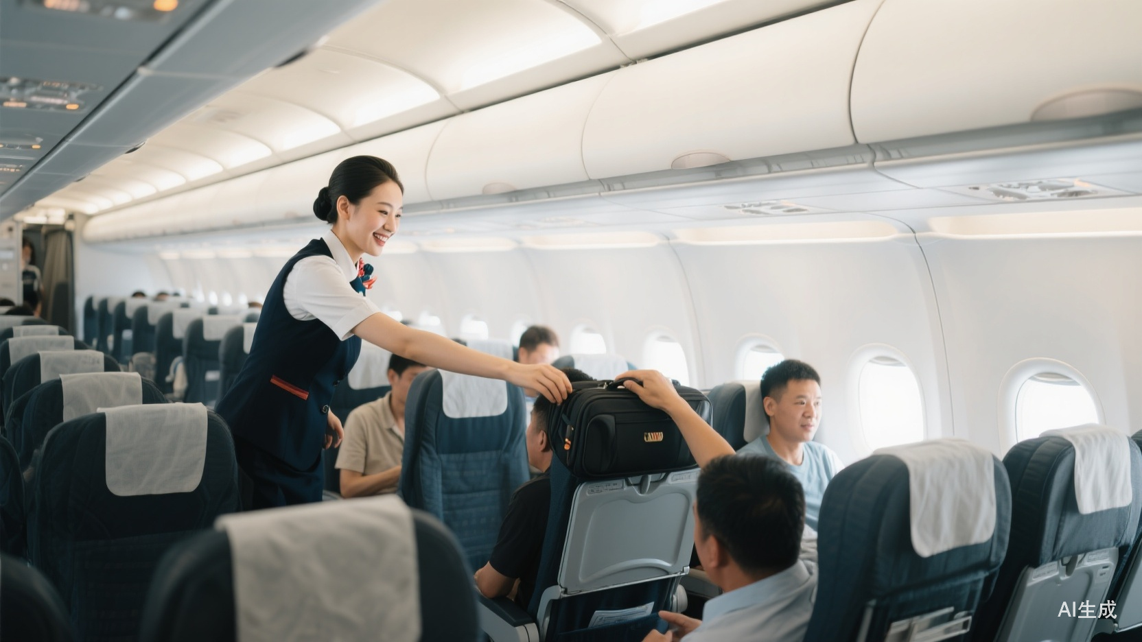 乘务员立刻再次广播制止,另一名乘务员也进入客舱,逐个关闭已经被打开的行李架。