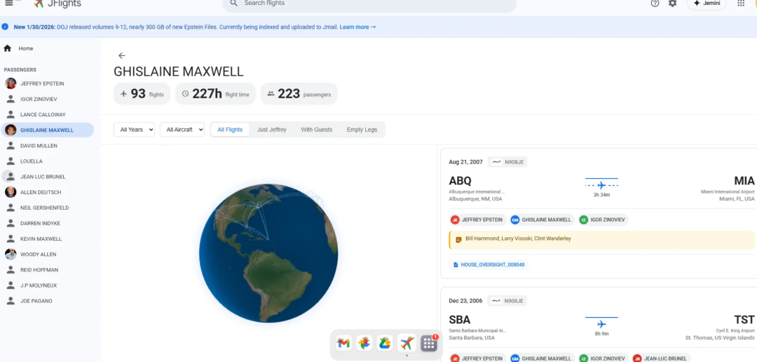 最新公开的检察官邮件显示,他在90年代乘坐爱泼斯坦私人飞机的次数比此前已知的更多(至少8次),且曾与马克斯韦尔同行——没想到档案这么详细,自己也在上面。
