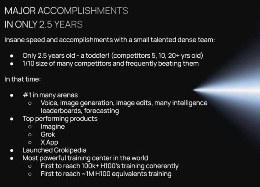 首先,是xAI已经达成的里程碑。