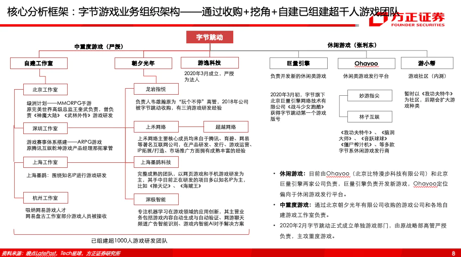 当然,字节的游戏野心并不会止步于沐瞳。2019-2021 年,字节开启游戏资产“扫货模式”,先后入主上禾网络、上海墨鹍,投资麦博游戏、有爱互娱等游戏企业;其业务版图最辽阔时,手握十余家工作室、四大发行平台及 29 家关联游戏公司,摊子越铺越大——在流量为王的时代,字节坚信只要堆资本、堆人力、堆流量,就能在游戏赛道复现短视频赛道的成功。