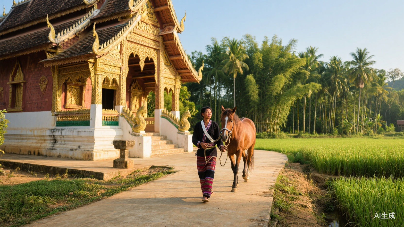 尽管之前查过资料,知道它是“全国重点文物保护单位”,为傣族南传上座部佛教建筑的代表作之一,但只有身临其境,细细感受它的坐落、布局、气场,整体与细节,窥见邻里居民在其间出入安静、礼敬自如,那种在田野间突然拣拾到遗落珍宝的惊喜,远非时下盛行的按小红书索骥打卡的“预制”获得感所能比拟。