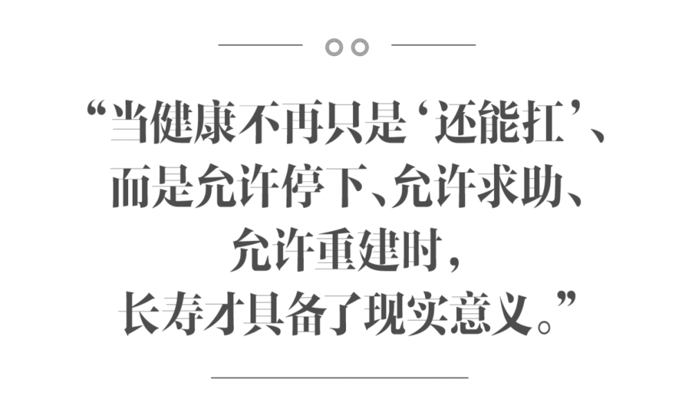 真正成熟的长寿观,并不回避生命的终章。相反,正是因为承认终点的存在,人们才更清楚地意识到:生命的价值,并不只存在于延续本身,而在于是否完整地走过每一个阶段。