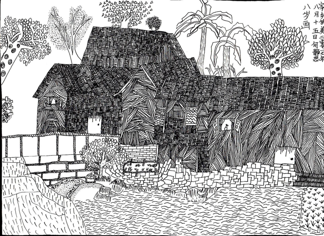 欧老师在走访中发现了重庆市一项传统艺术——复兴镇农村线描画,以农民的生产生活和农村的山水为题材,用线条作主要的线条手段,画面简单线条清晰。