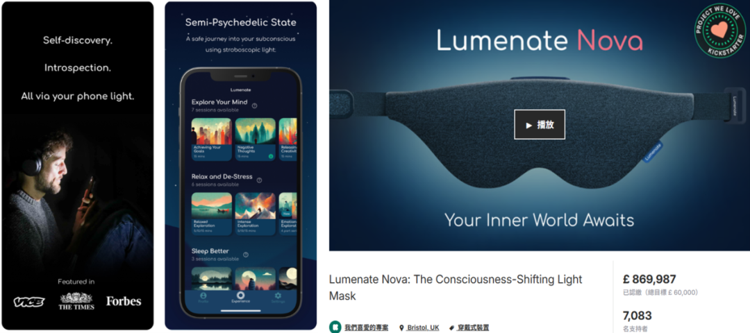 而当App的体验瓶颈(手持不便、光路不稳定)暴露,Lumenate并迅速推出了配套眼罩来解决这些痛点。