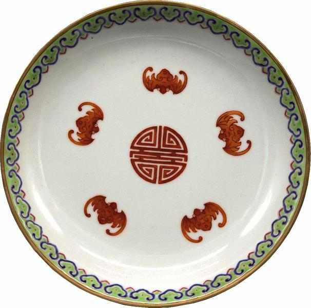 清·乾隆官制粉彩描金五福捧寿盘丨图源:文化艺术报/whysb.org