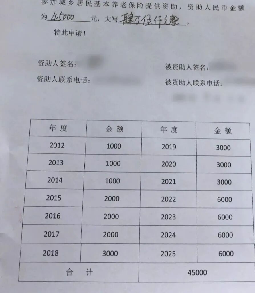 眼看父亲要被卡出去,刘博不甘心。他又打听其他方法,才发现城乡居民养老保险个人资助政策——家庭成员、亲友可以给即将满60岁的老人提供资助,直接打进社保账户余额,和养老金合并发放。
