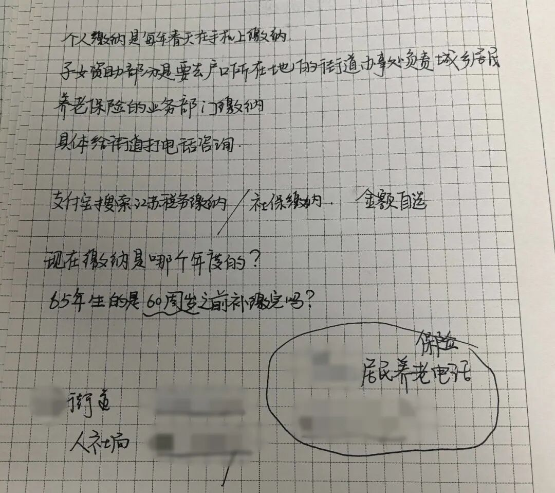 图丨张羽为母亲补缴社保做的笔记