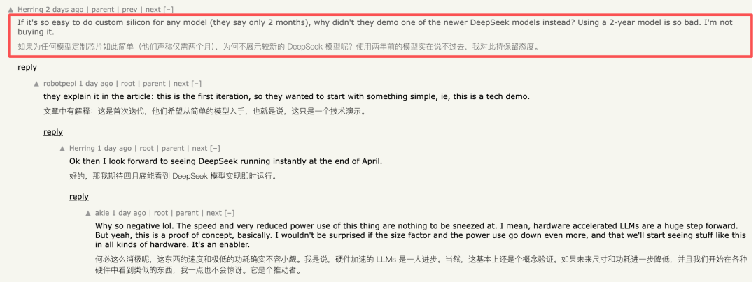 但Hacker News上有条评论很扎心:如果两个月能搞定,「为何不展示较新的DeepSeek模型呢?」