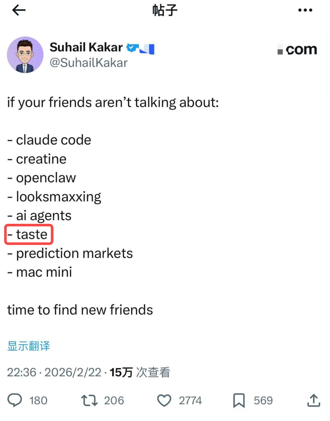 创投圈每隔一段时间就会蹦出来个新词儿,从PMF到founder mode,直到最近taste这个词又突然开始爆火,作为创投圈外围男的我都知道了。而当一个事儿我都知道了,就说明这个东西已经非常火了。(参见我的上一篇十万加文章:谁更早看到了Deepseek?在这篇文章中我深刻指出,我大概会在一个东西火了之后1-2年后得知。)