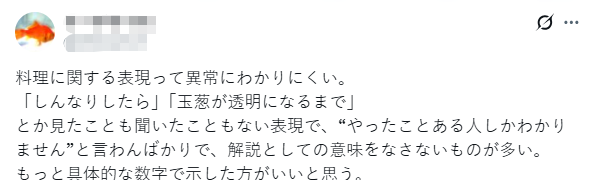 “变软的时候”“直到洋葱呈半透明状”……这些表达方式我之前没听过也没见过,解释变得毫无意义,仿佛在说:“只有做过饭的人才会明白。”