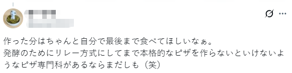 让披萨发酵起来,即便要用接力的形式制作,那也得是专门制作披萨的学校才敢这样吧。(笑)