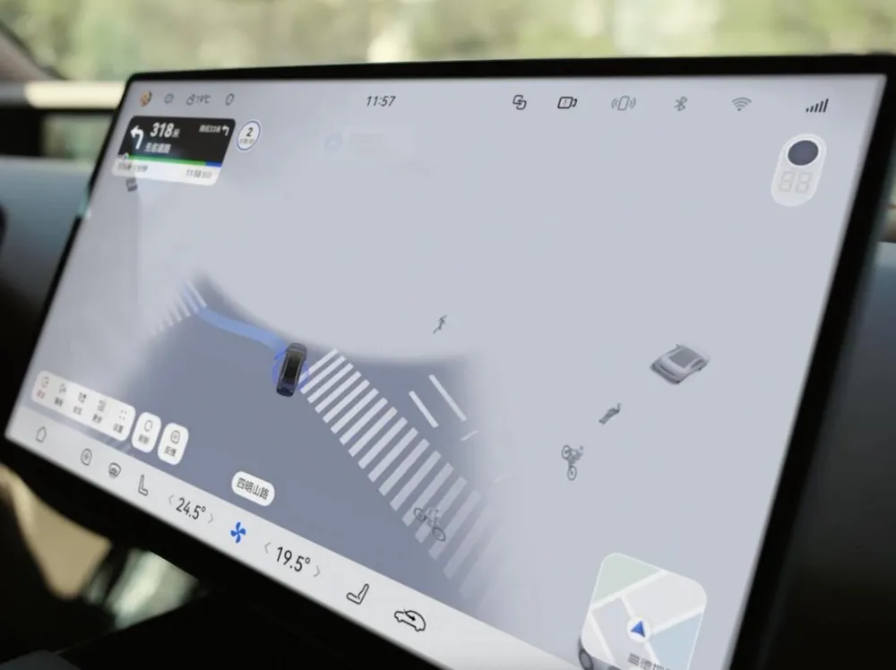 但升级新版本ADS后,驾驶者只需按一下方向盘上的NCA按键,开启乡村窄路辅助驾驶,车机就会实时显示道路边界三维建模,即便没有车道线和交通标识,也能精准沿道路中央行驶,避开障碍物;遇到农用三轮车等障碍时,车辆还会自动启动三点式掉头,几十秒就能平稳完成;人车混杂时,车外语音播报系统还能主动和路人沟通,十分便捷。