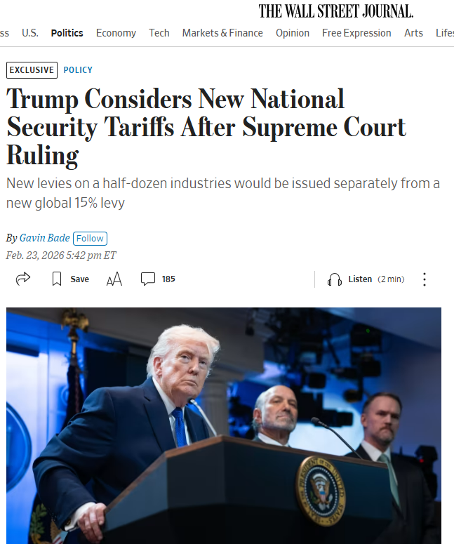 [3]https://www.reuters.com/world/us/trump-considers-new-national-security-tariffs-after-supreme-court-ruling-wsj-2026-02-23/