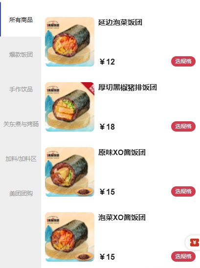 产品方面,主流连锁饭团店的SKU普遍在10个以上,涵盖猪排、鸡排、虾仁、芝士、油条、火腿等常见食材,通过不同组合搭配出多种口味。