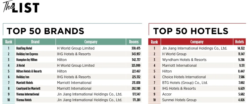 《Hotel》杂志2024年度酒店品牌客房数量排名