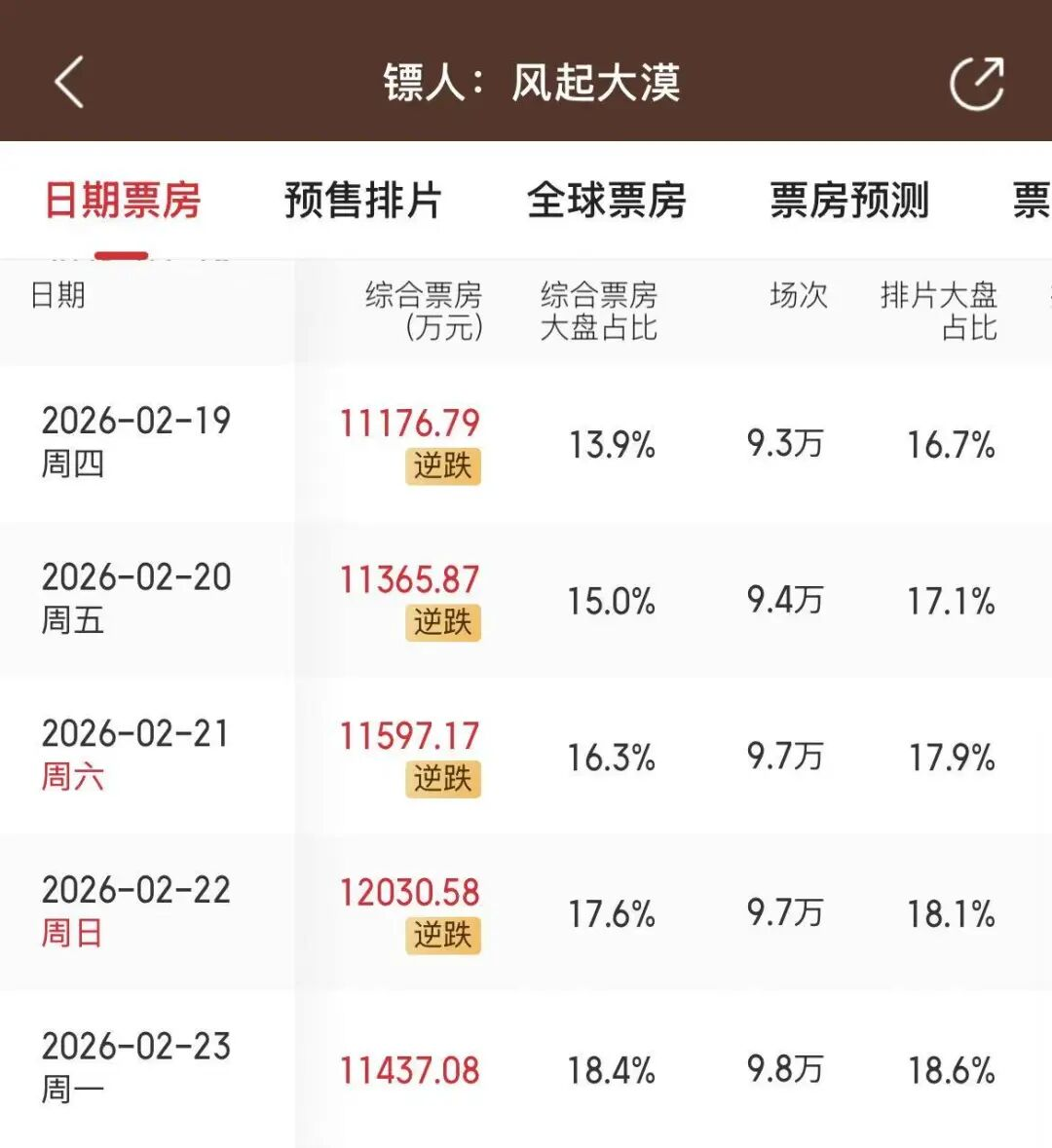 《镖人》成了档期内唯一“逆跌”的影片。