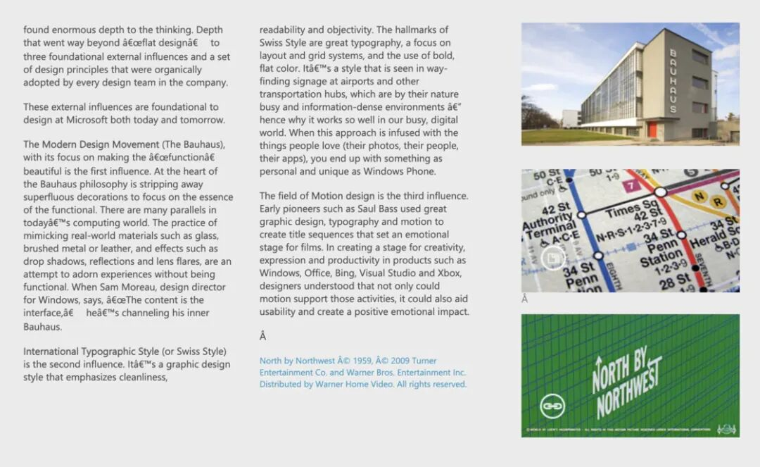 在微软早期的设计官网中,设计团队成员Steve Clayton将这场操作系统交互范式的转变,类比为计算机图形界面领域的一次「包豪斯运动」。