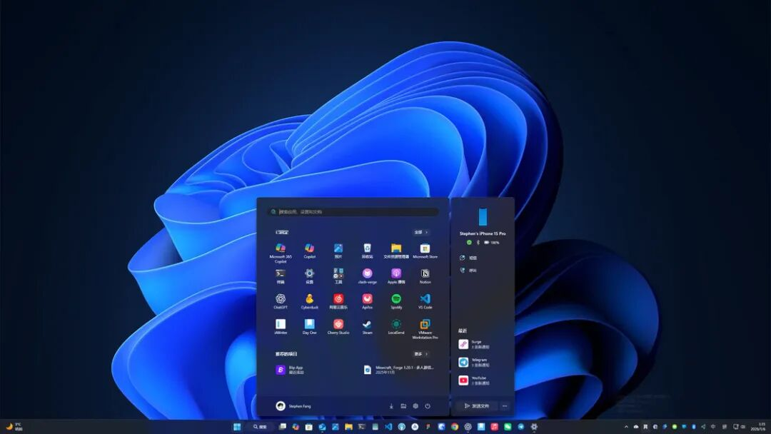 Windows 11下的开始菜单