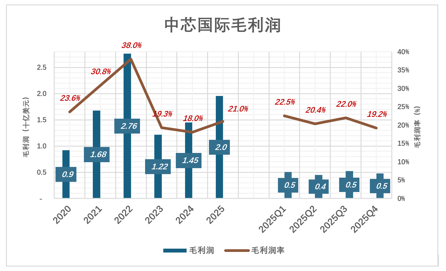 2025年,中芯国际毛利润提高到19.6亿美元,毛利润率提高到21%;