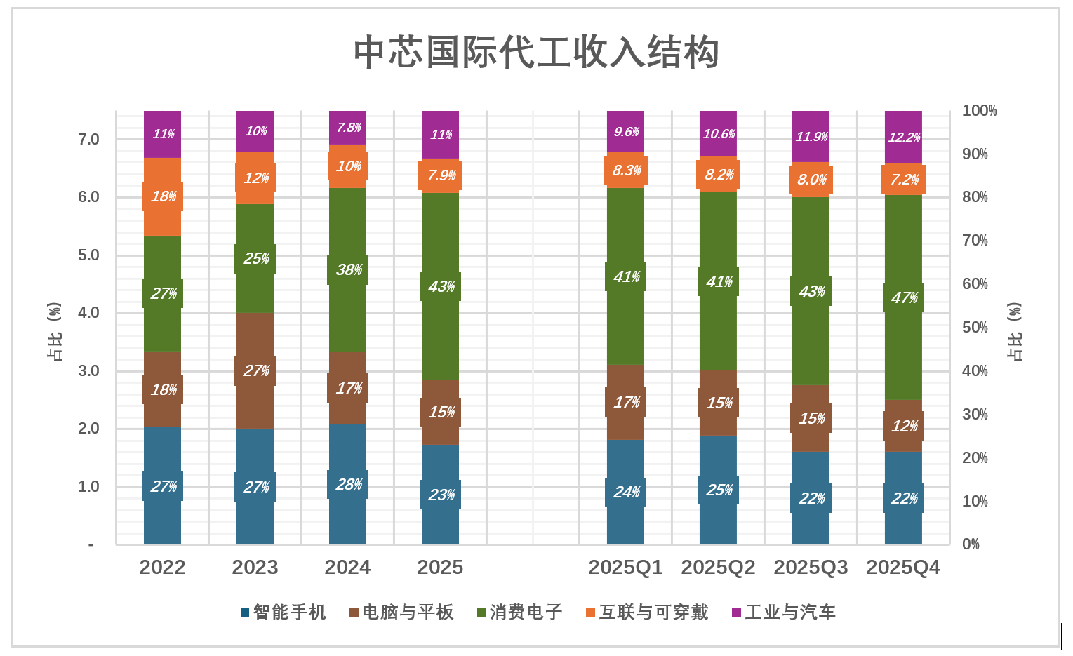 同期,中芯国际43%收入来自消费电子,22%收入来自智能手机;