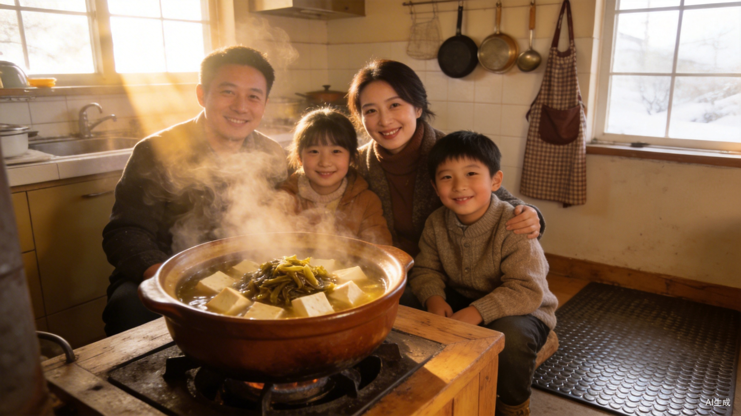 王知县怎么做的咸菜滚豆腐,我没有办法考证,但我估计,大致程序可能和我们小时候吃的差不多。那会儿,一般是到了冬月腊月,下雨天或者是下雪天,屋里冷得伸不出手,我爸烧起炉子,在锅里下点儿猪油,再把咸菜炒一炒,炒到泛白生香,再加水。水烧开后,把豆腐剁进去,再加点儿黑玉白。豆腐、咸菜、黑玉白,咕噜咕噜滚着,我们一家人围着炉子坐着,一直到吃完,炉子里的火都是旺的。那个舒服呀,比王知县还美。