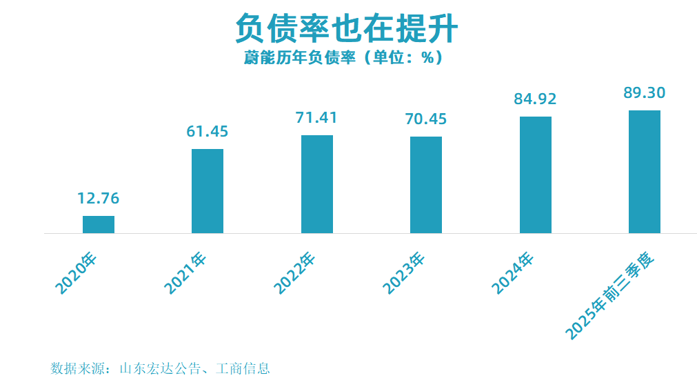 从工商信息也能看出来,蔚能是需要输血的——它在2025年三季度有252亿资产,但是有225亿负债,负债率接近90%。