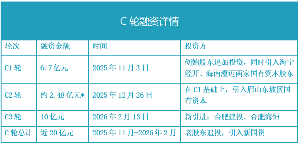 这是蔚能C轮融资的最后一笔。从2025年10月到2026年2月,蔚能C轮累计融资近20亿元,其中C1轮6.7亿元、C2轮2.48亿元、C3轮10亿元。