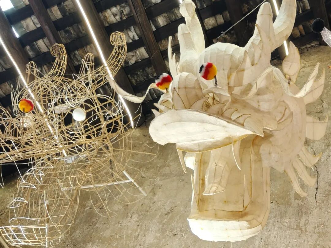 △宾阳炮龙的竹制骨架,通常为非遗传承人手工编制而成,工艺精巧繁复。(图/Kyla摄)