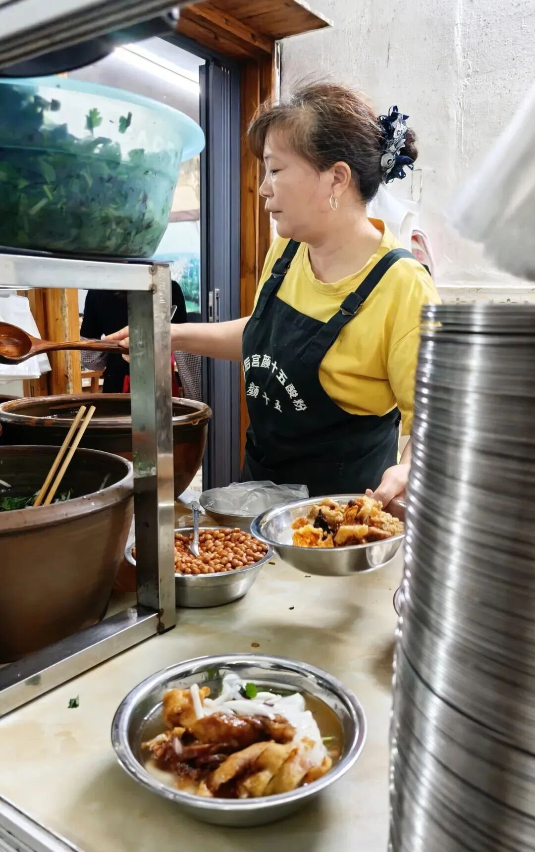 到达宾阳后的第一件事,当然是吃一碗宾阳酸粉。酸粉大多10元一碗,口感清爽顺滑,配菜铺满整碗。酥脆的炸物混着酸甜的汤汁,非常开胃。南街街口的几家酸粉铺都是超过10年的老店,常年有当地食客排队用餐,随便走进一家都不会踩雷。