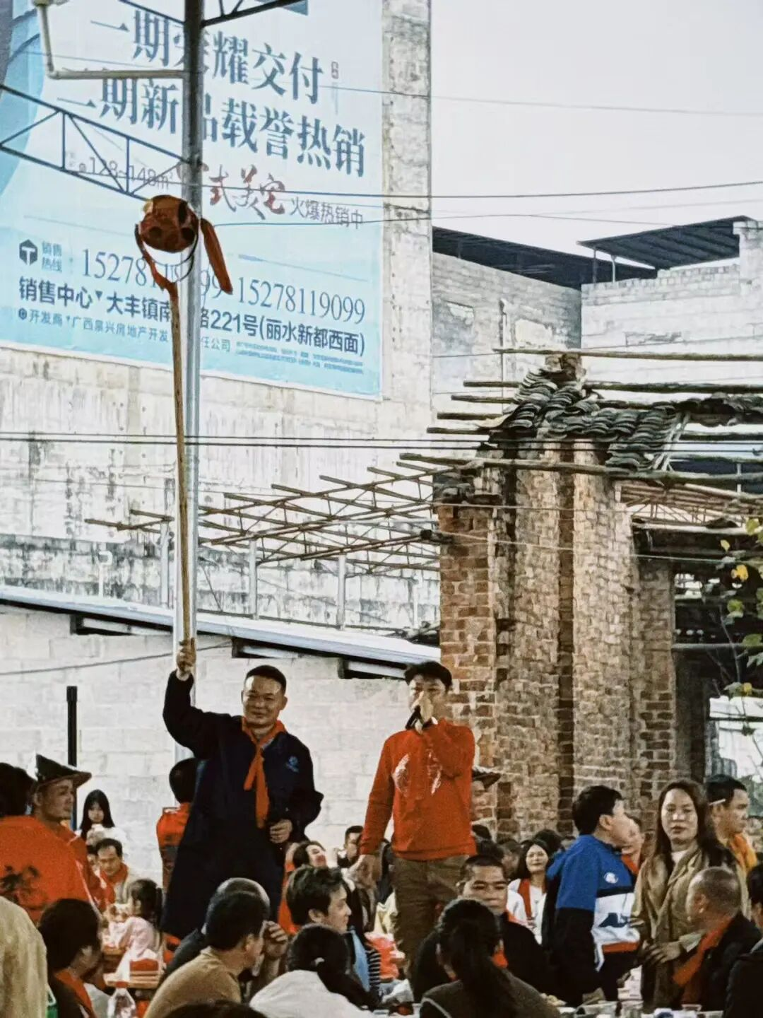 几乎每条街都会筹备自己的宴席,红色的塑料凳和大圆桌摆满整条街道,一眼望过去很是壮观。闲不住的小孩哥、小孩姐们围在宽厚的大鼓旁,敲鼓手法已然老练,但面对镜头又露出稚气的笑容。