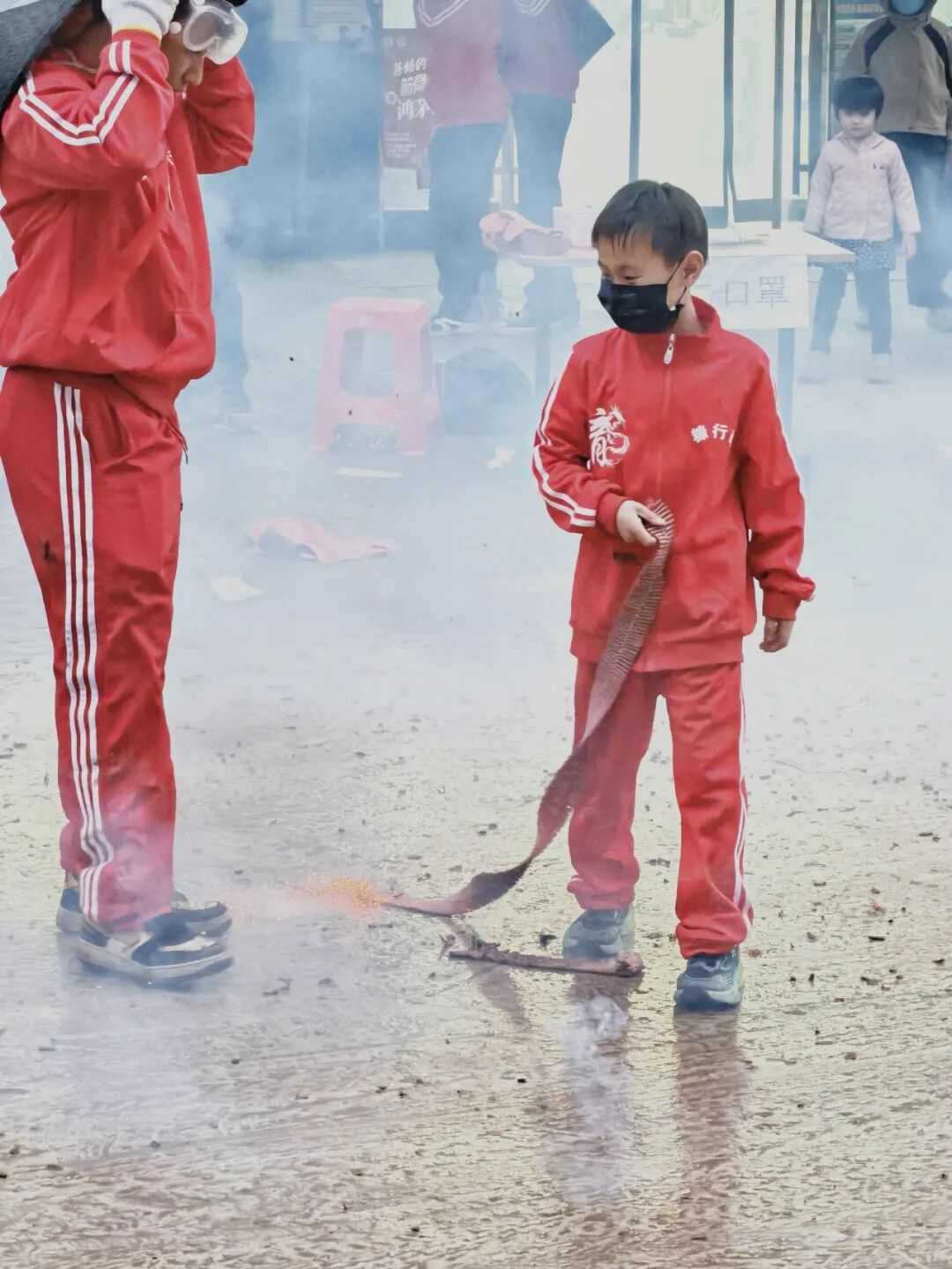 舞龙一开始,我就被一颗炮仗“精准”地蹦到了口罩未覆盖的眼角位置,难免心有余悸。但随着天色渐晚,我还是被现场的热烈氛围感染,不由得越靠越近。