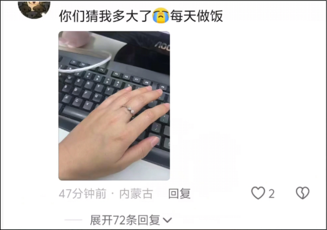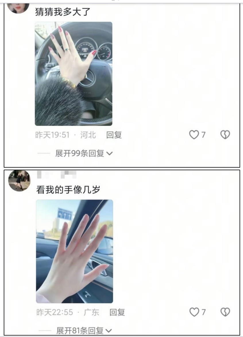 发图的人实在太多了,有的人干脆不当猜猜侠了,直接说我33岁了,我的漂亮小手长这样。