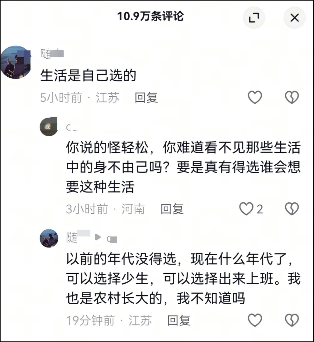 现在阿衣姑娘的评论区里,大多数人在告诉她,你很厉害,你可以过得更好;