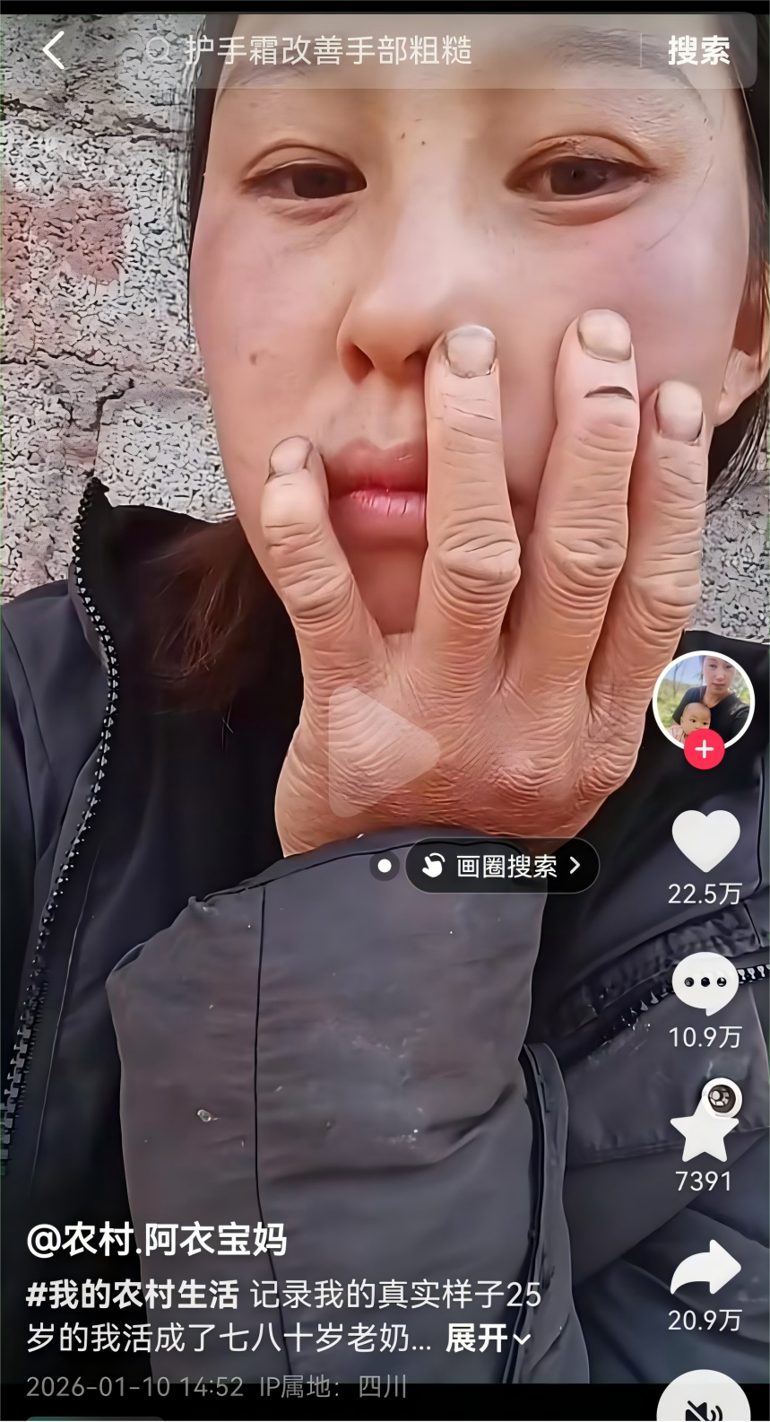 1月10日,她发布了一条视频,用来记录自己真实样子,因为她发现周岁25岁的自己活成了七八十岁的老奶奶。